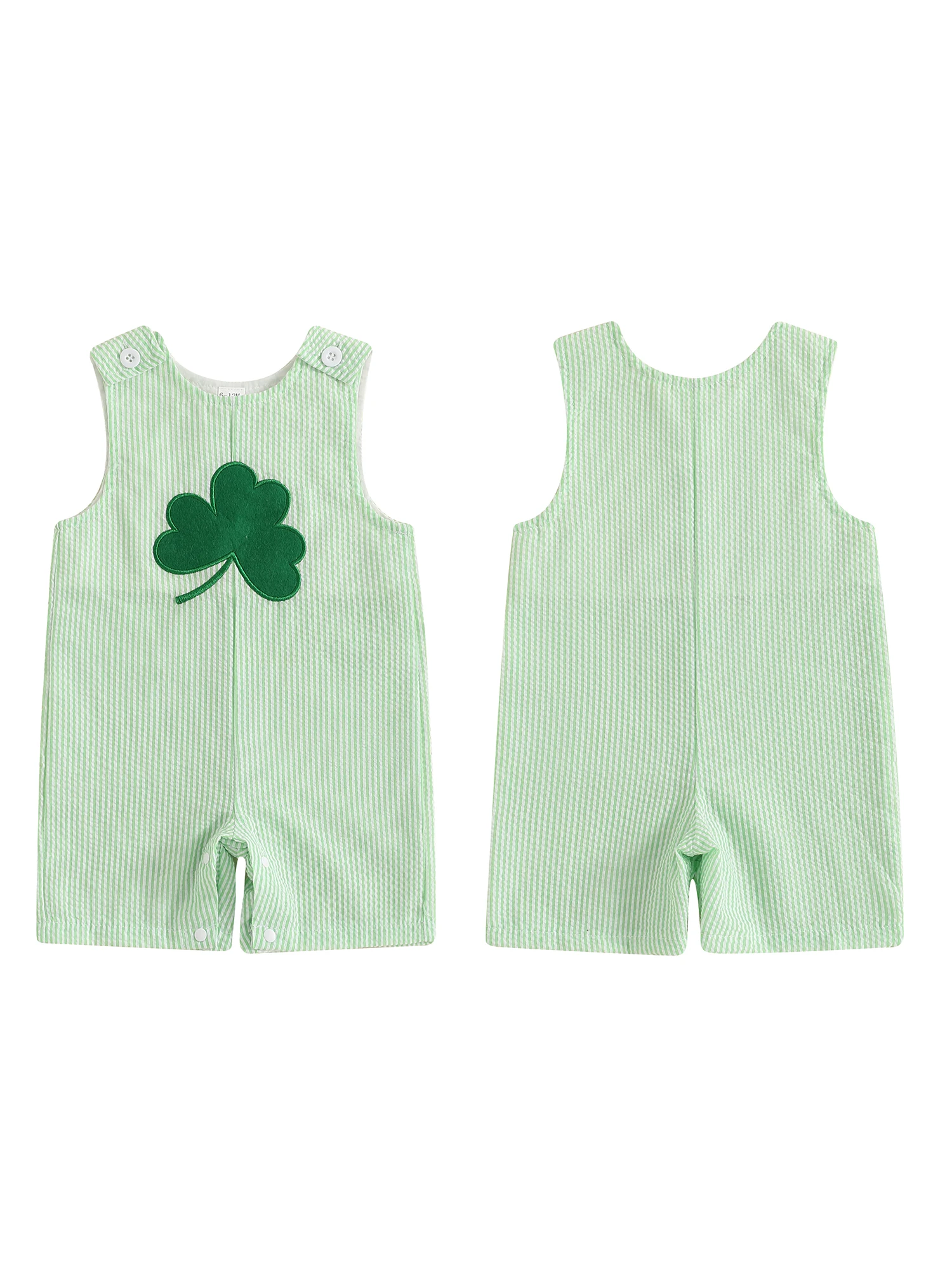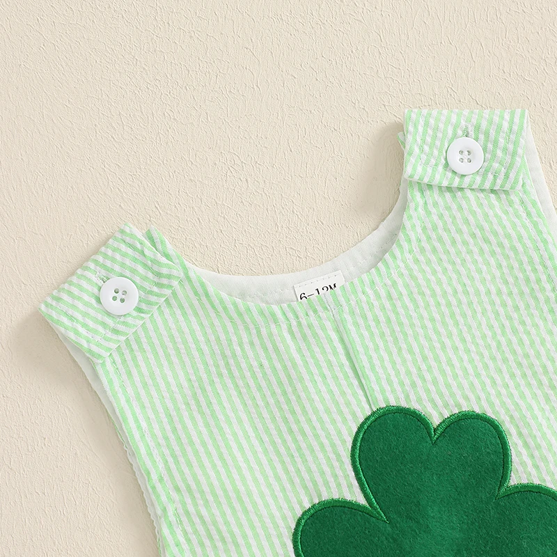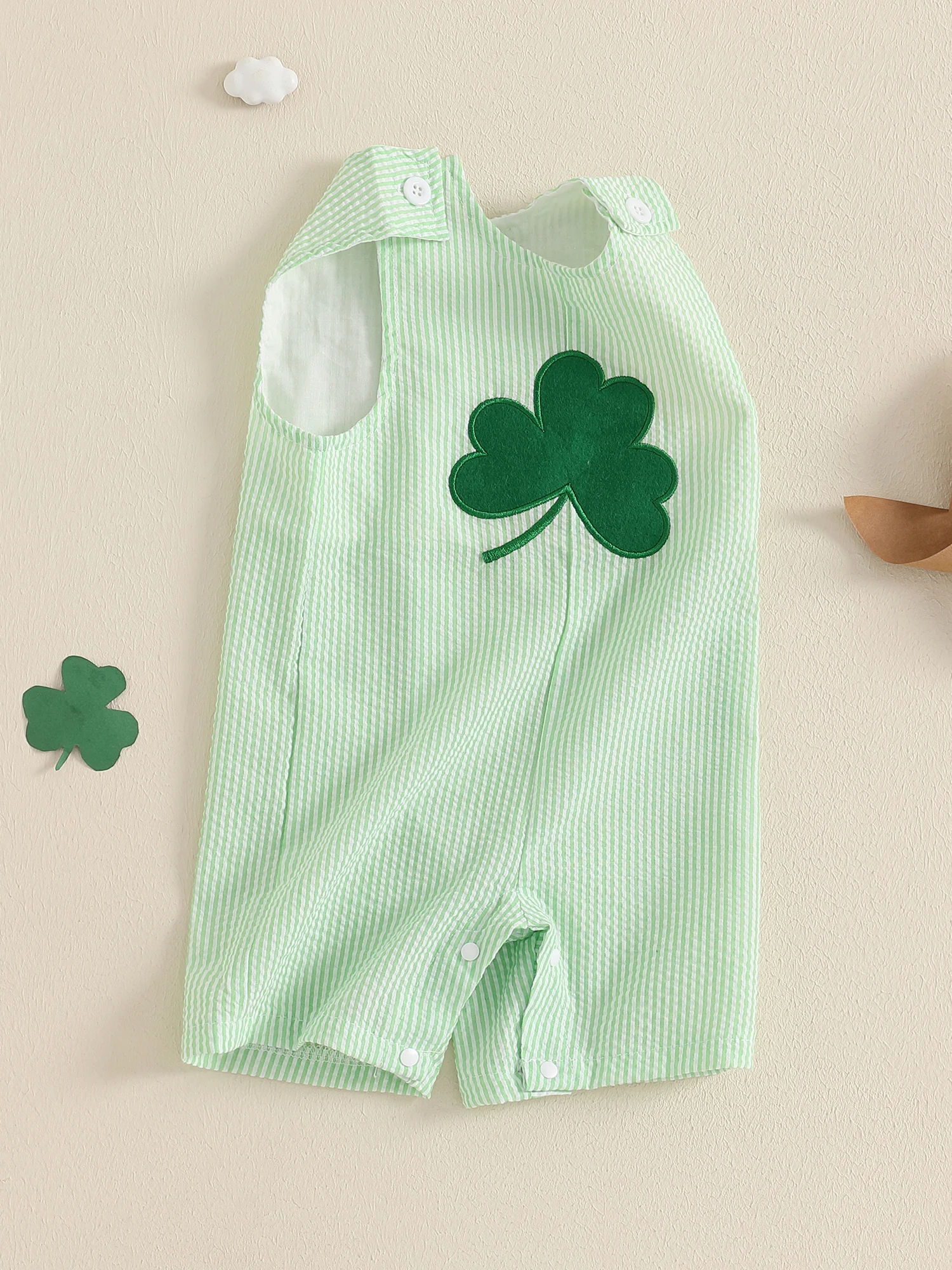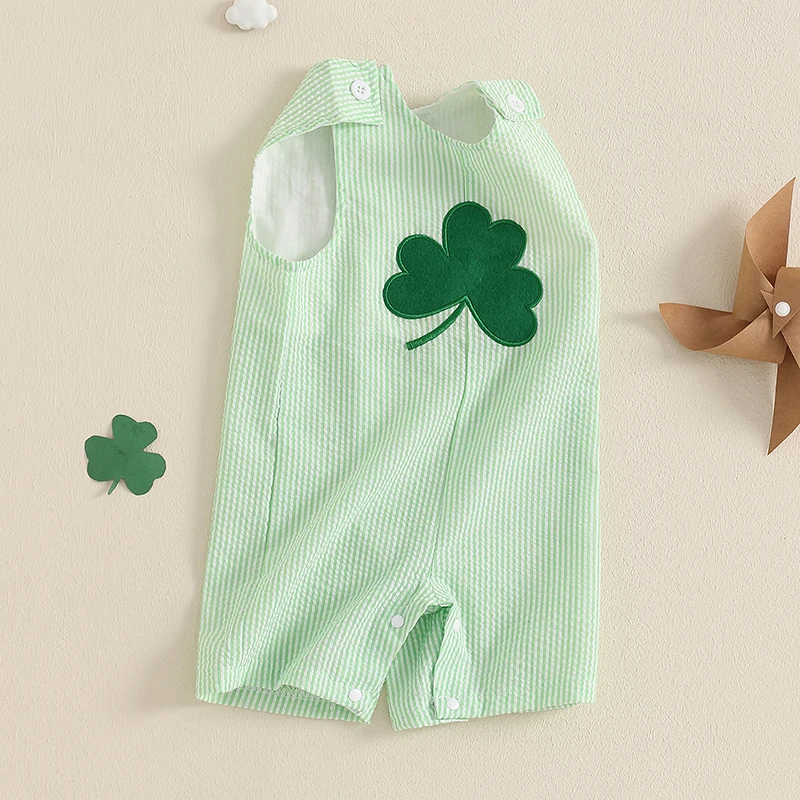 Baby Boy Striped Tank Romper Clover Embroidery Sleeveless Bodysuit Irish Clothes